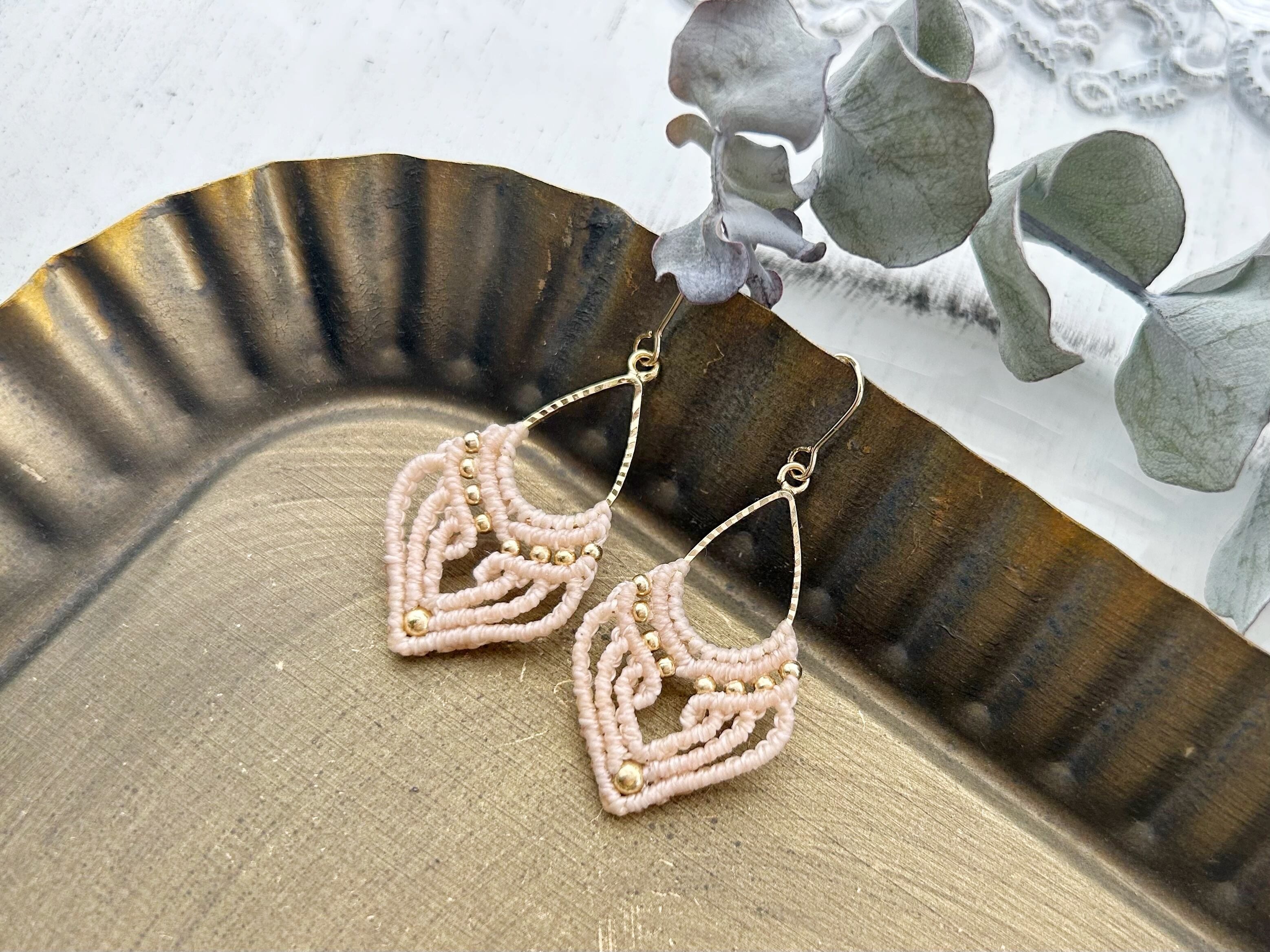 0.5mmの糸を一目ずつ丁寧に編んで作ったピアスです。いつもの自分もいいけれど、少し気分を変えたいときに。