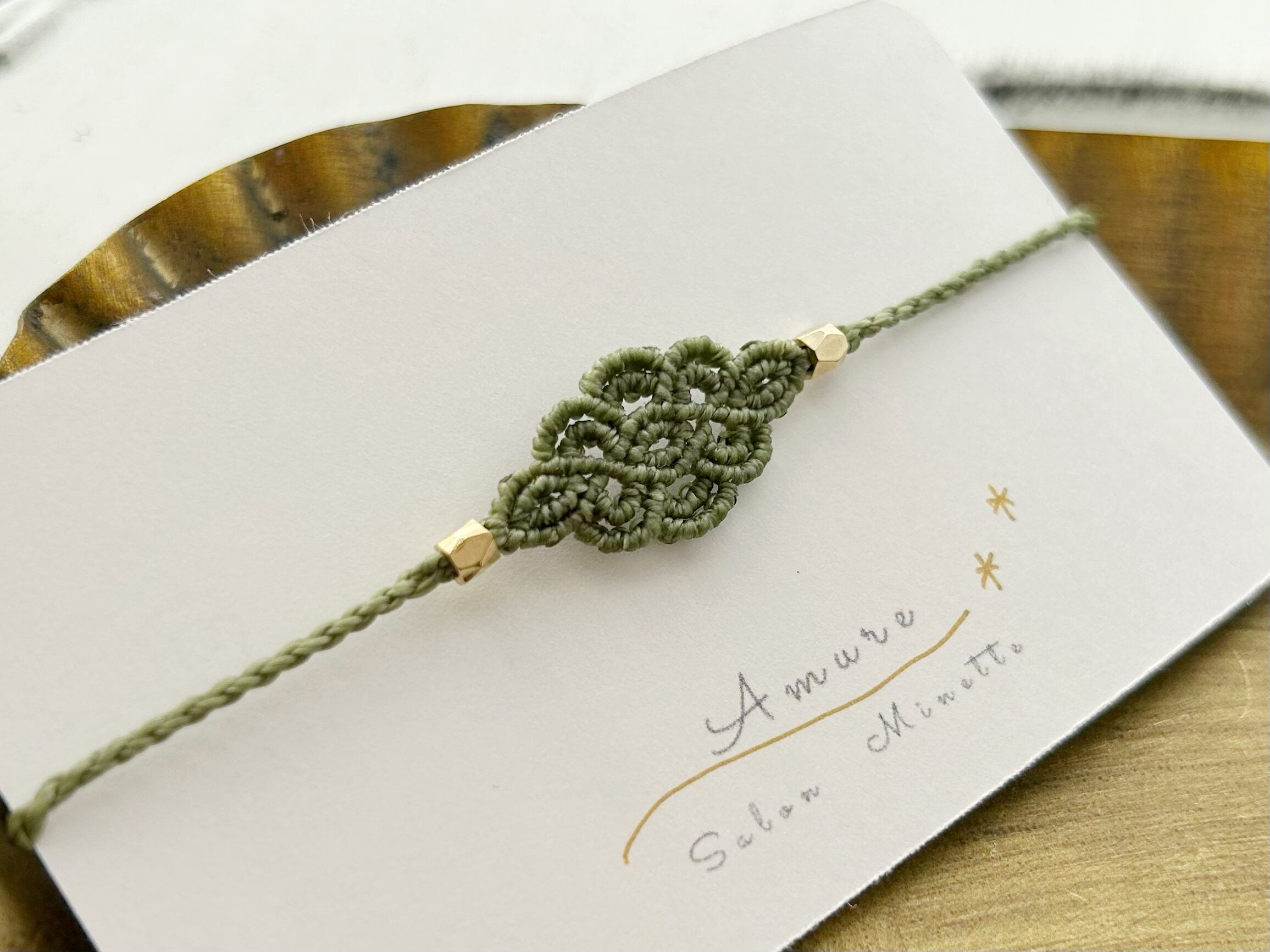 0.5mmの糸を一目ずつ丁寧に編んで作ったブレスレットです。