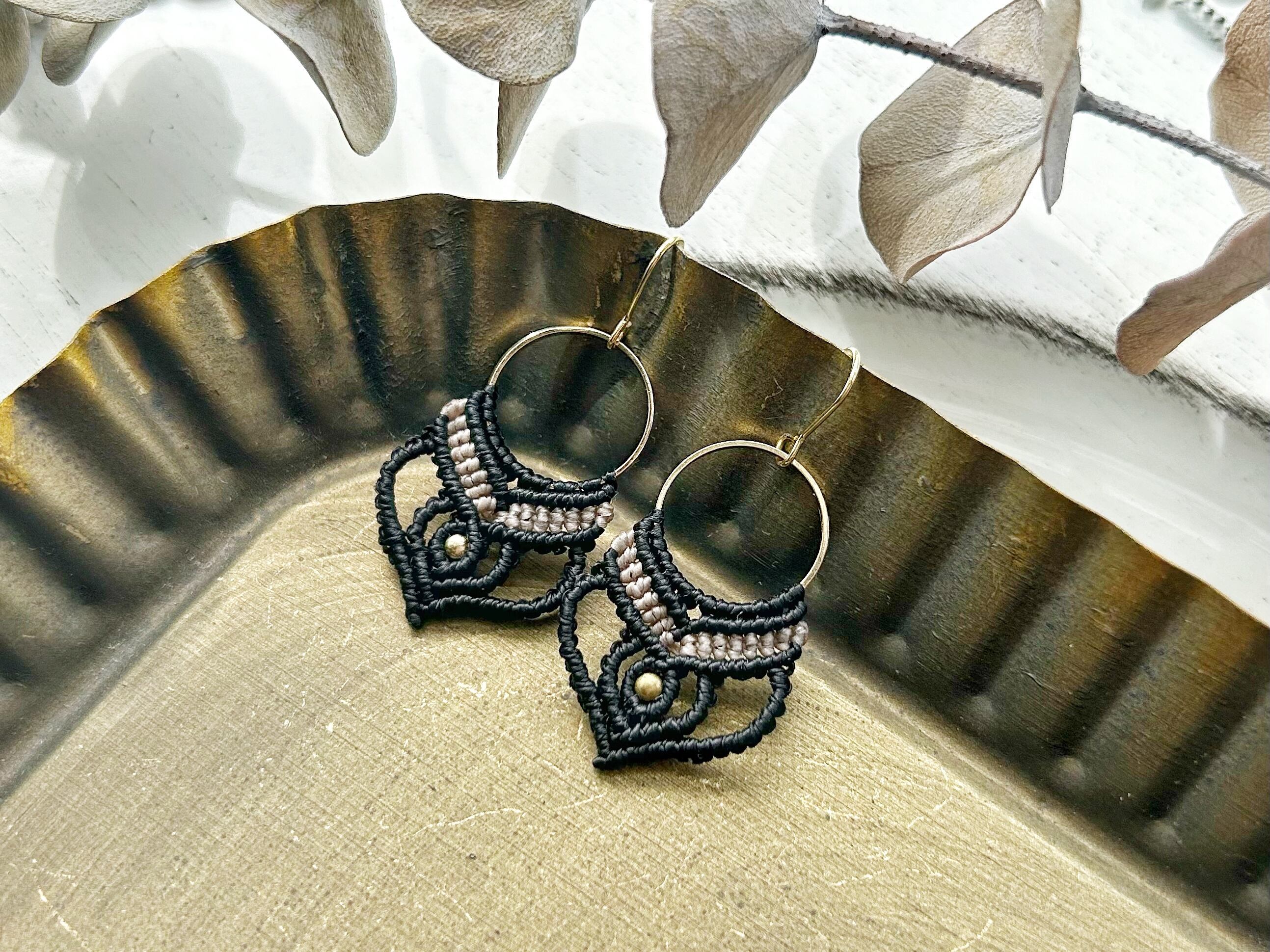 0.5mmの糸を一目ずつ丁寧に編んで作ったピアスです。