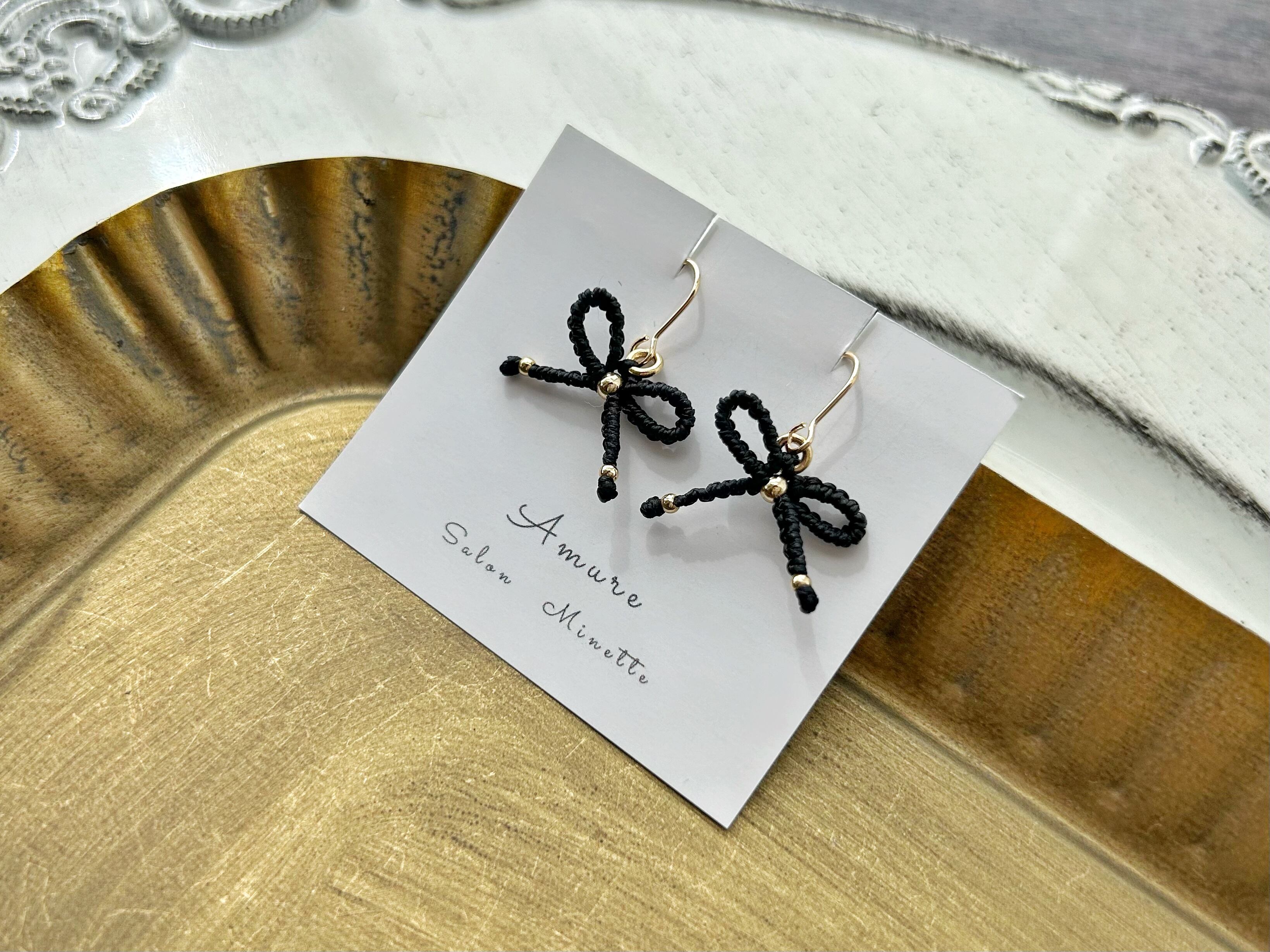 0.5mmの糸を一目ずつ丁寧に編んで作ったピアスです。