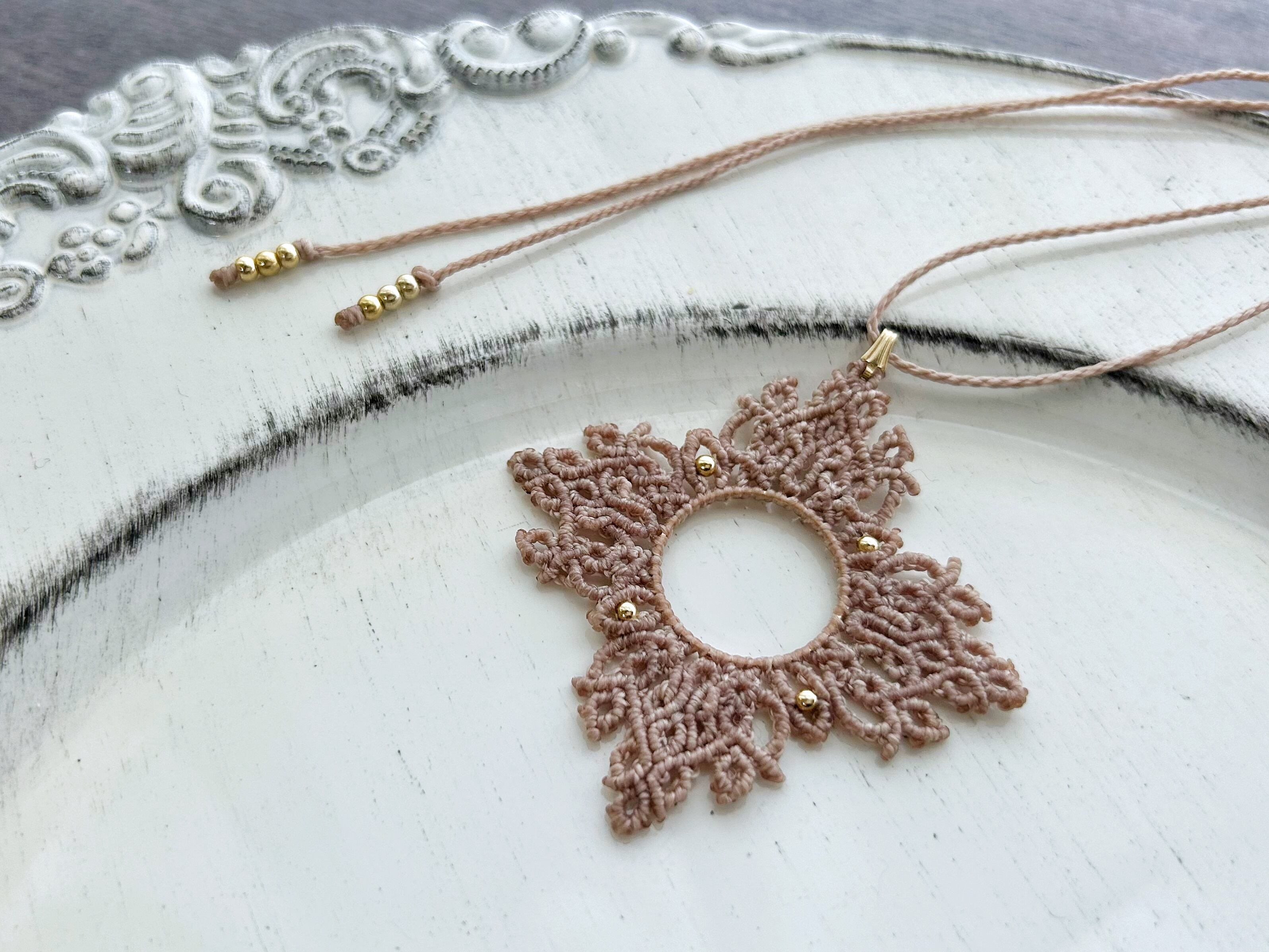 0.5mmの糸を一目ずつ丁寧に編んで作ったネックレスです。