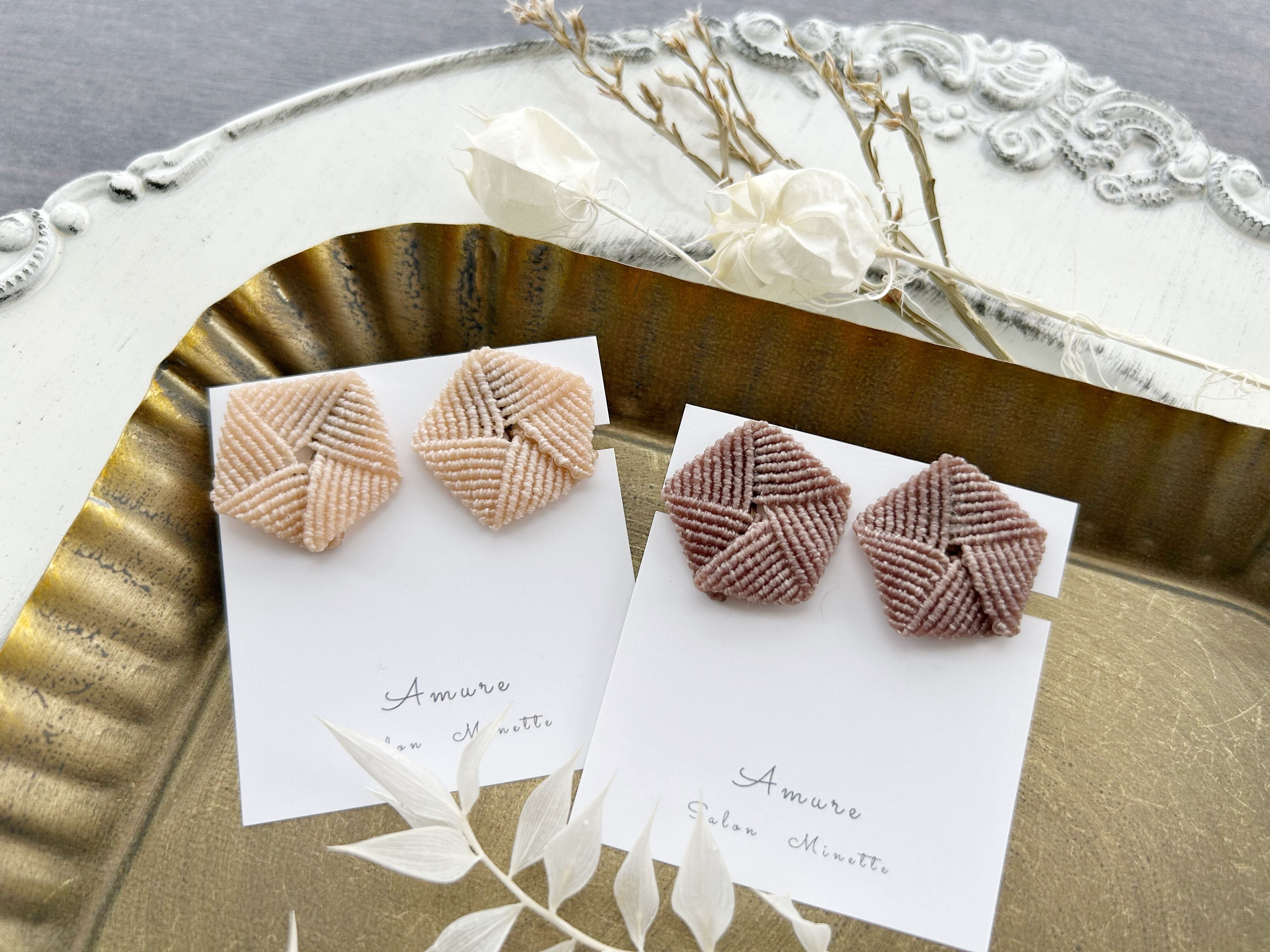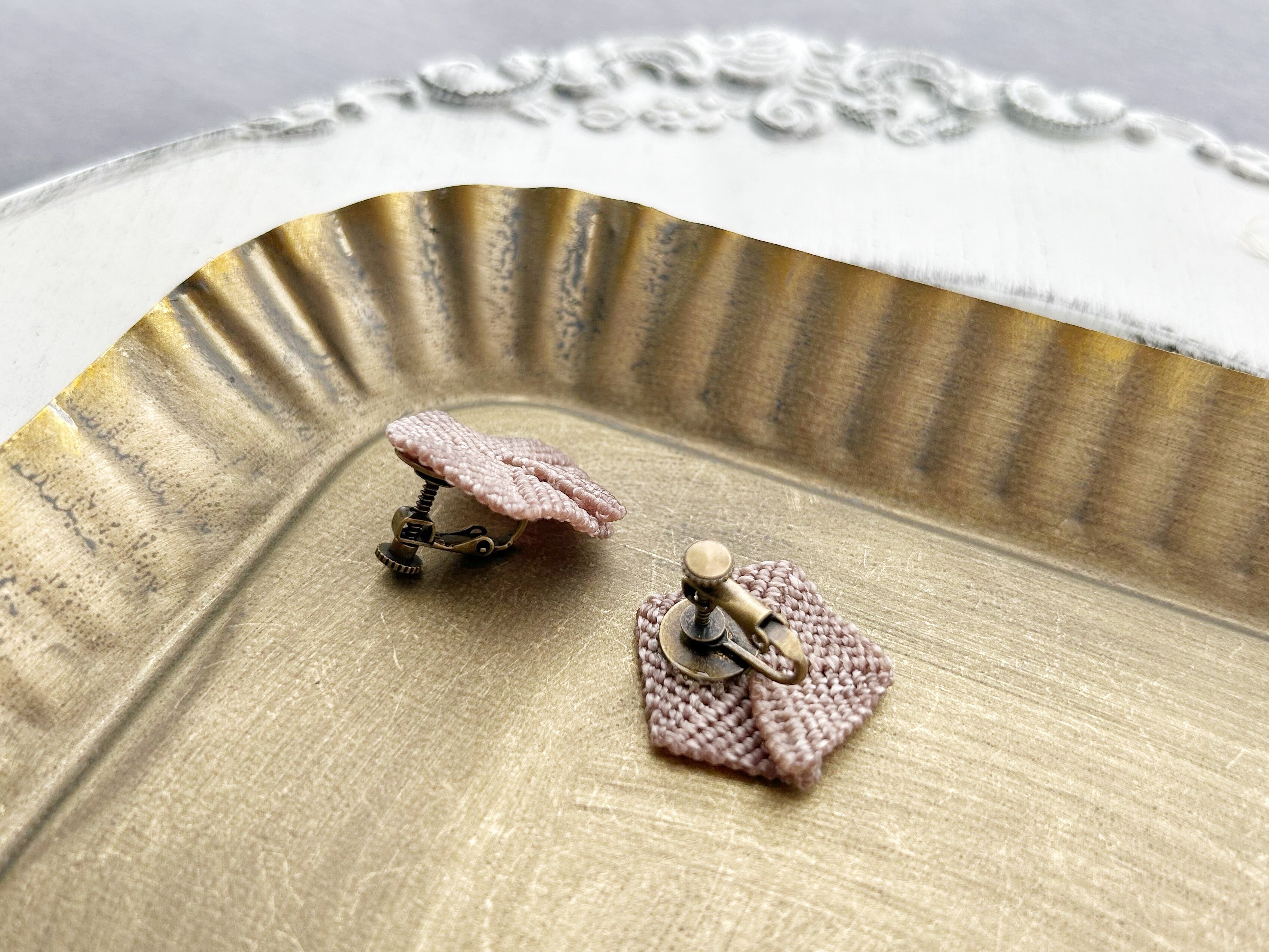 0.5mmの糸を一目ずつ丁寧に編んで作ったピアスです。