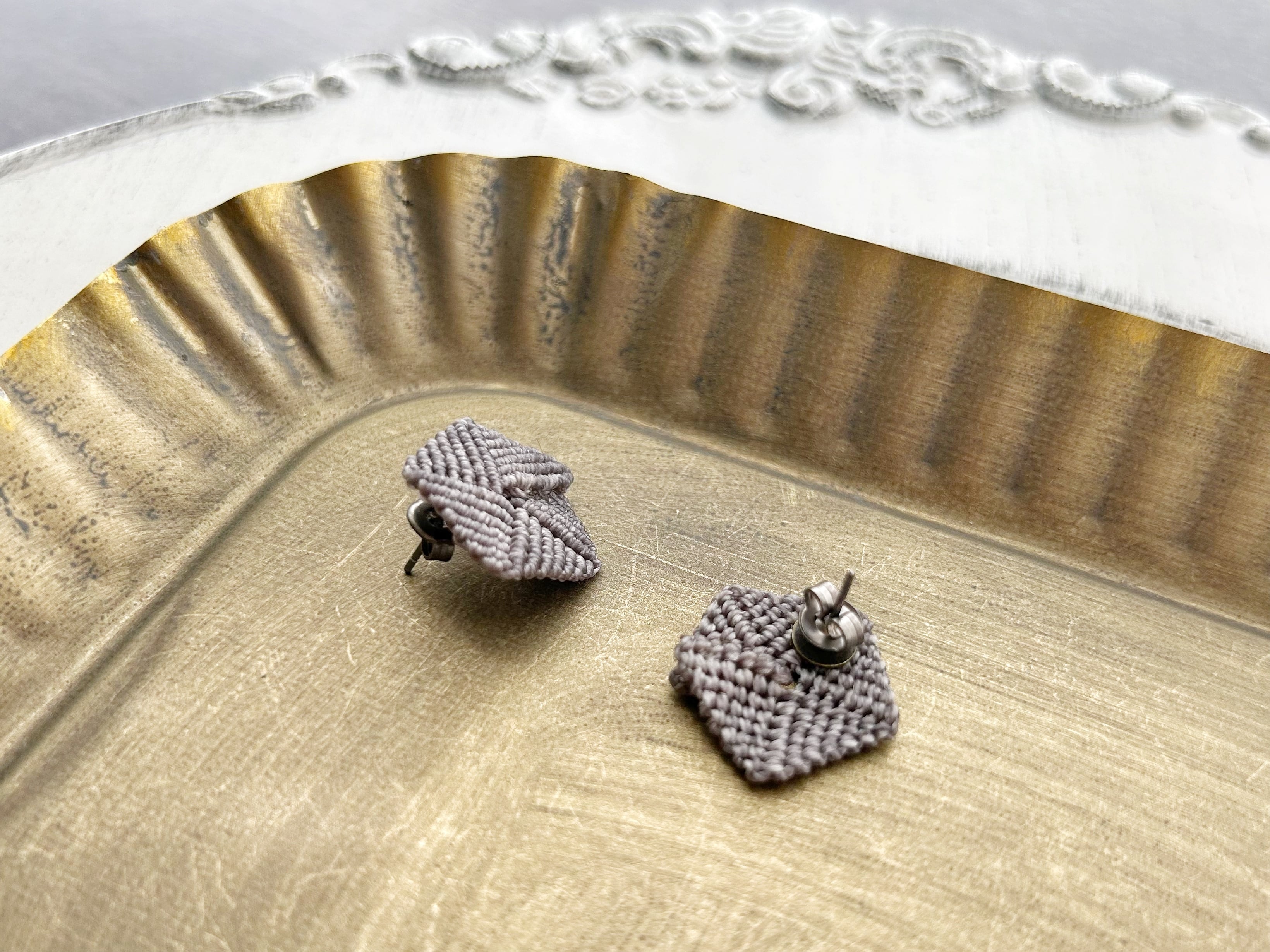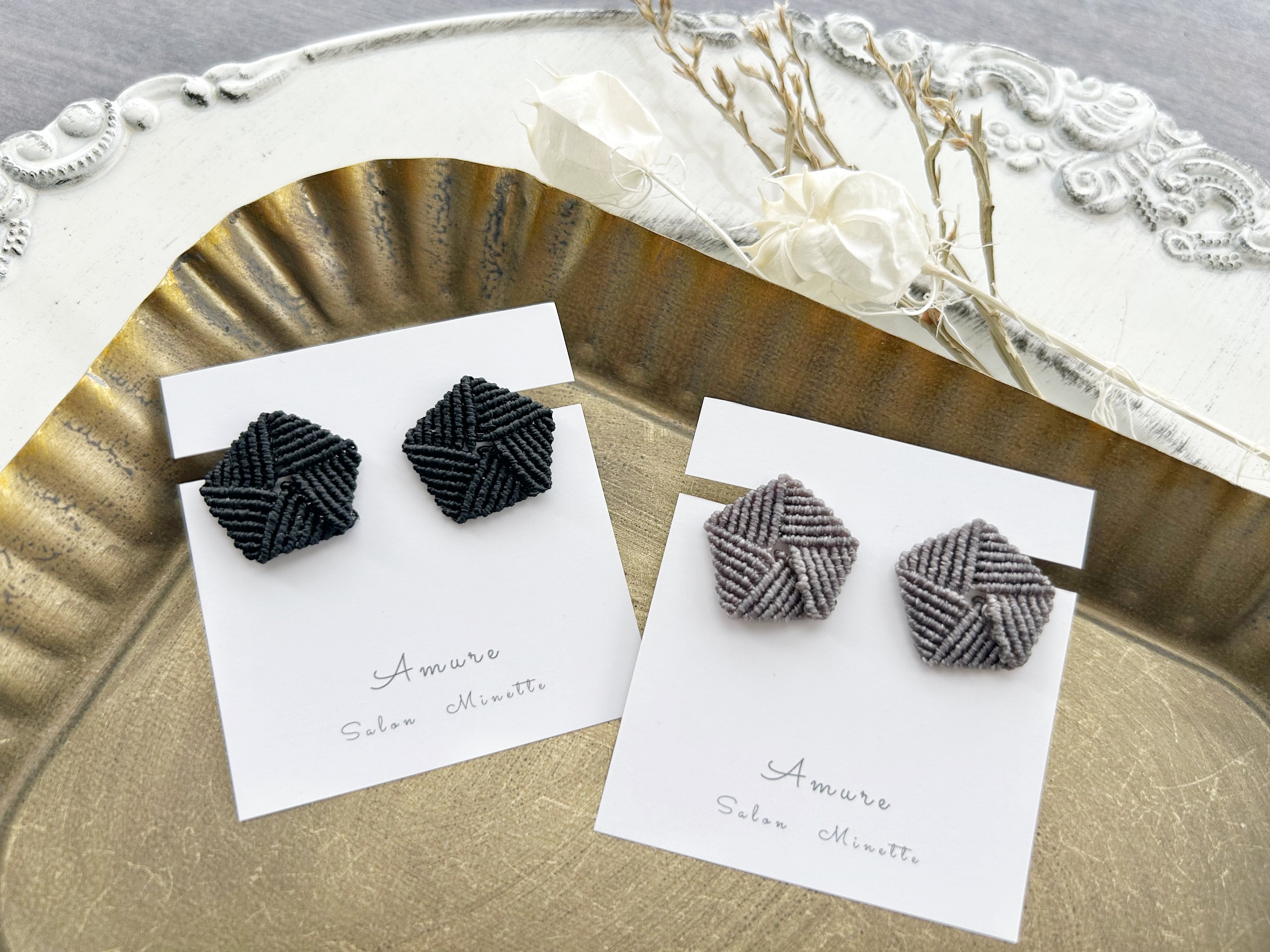 0.5mmの糸を一目ずつ丁寧に編んで作ったピアスです。