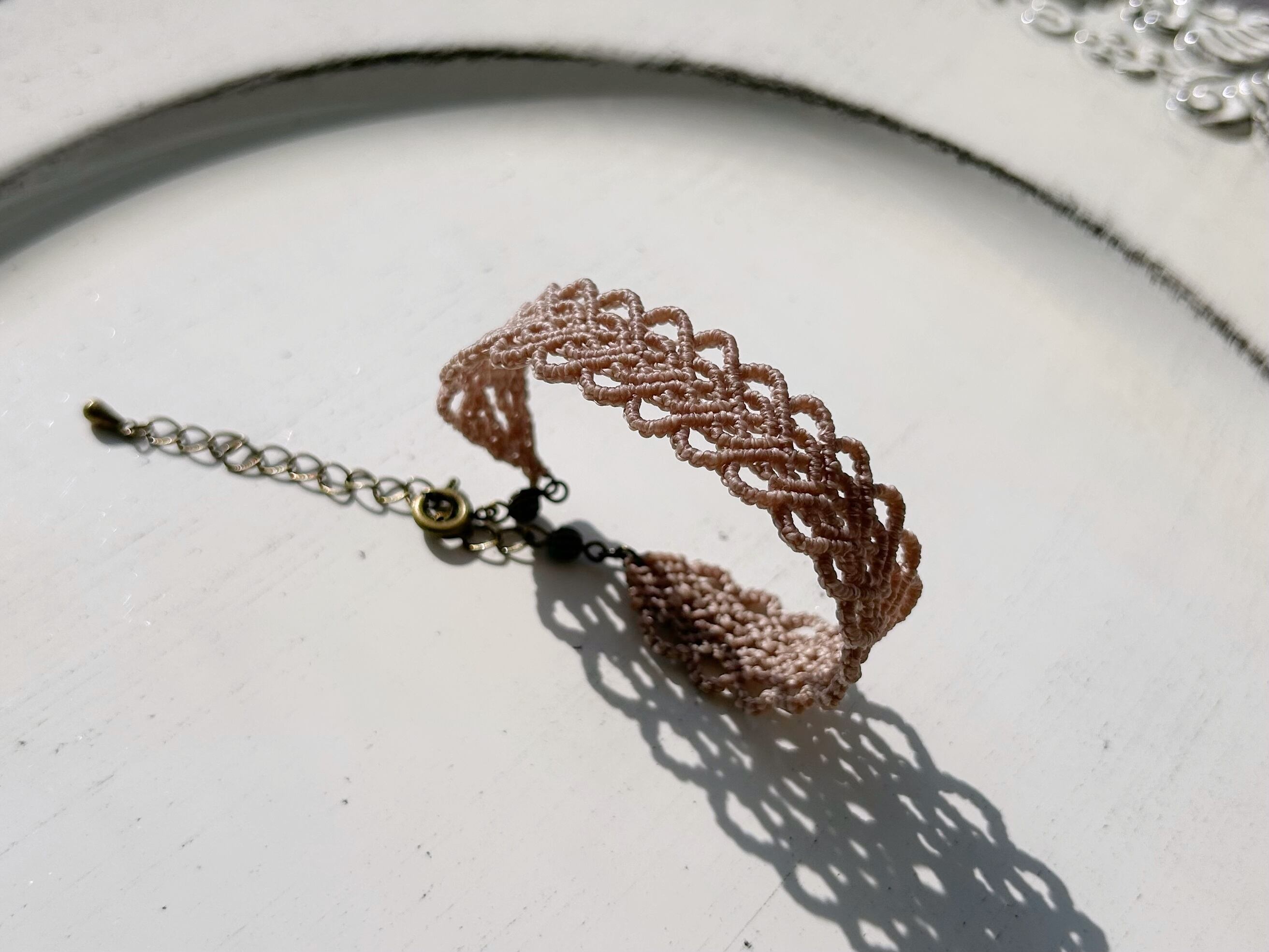 0.5mmの糸を一目ずつ丁寧に編んで作ったブレスレットです。